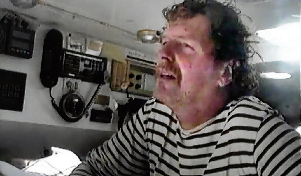 Spinner. Zeezeiler Henk de Velde in juni van dit jaar aan boord van zijn laatste schip, voordat hij voor een chemokuur en verdere behandeling definitief op het land zou blijven.© Foto Freddy.