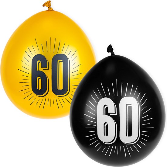 Ballonnen met getal 60 jaar 8 stuks Zwart en Goud