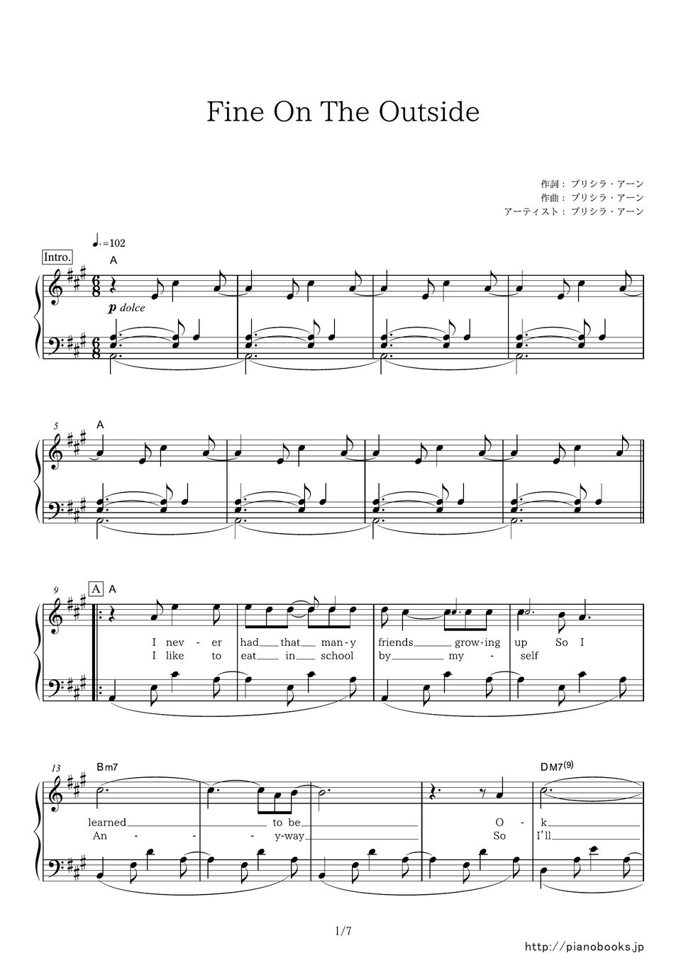 【ピアノ楽譜】Fine on the Outside / Priscilla Ahn(入門) 楽譜アプリ フェアリー