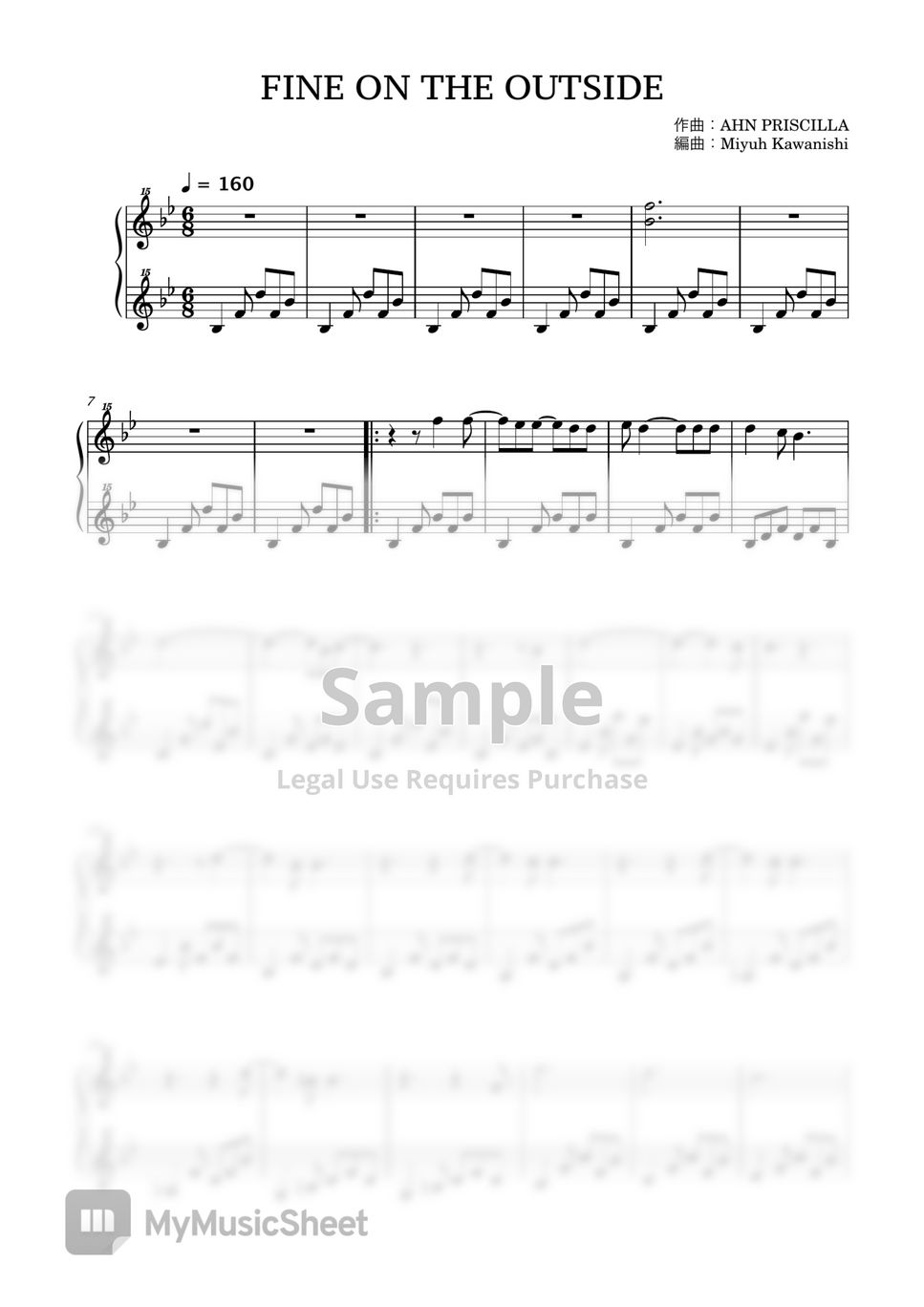 プリシラ・アーン Fine On The Outside (思い出のマーニー / トイピアノ / 32鍵盤) Sheets by 川西三裕