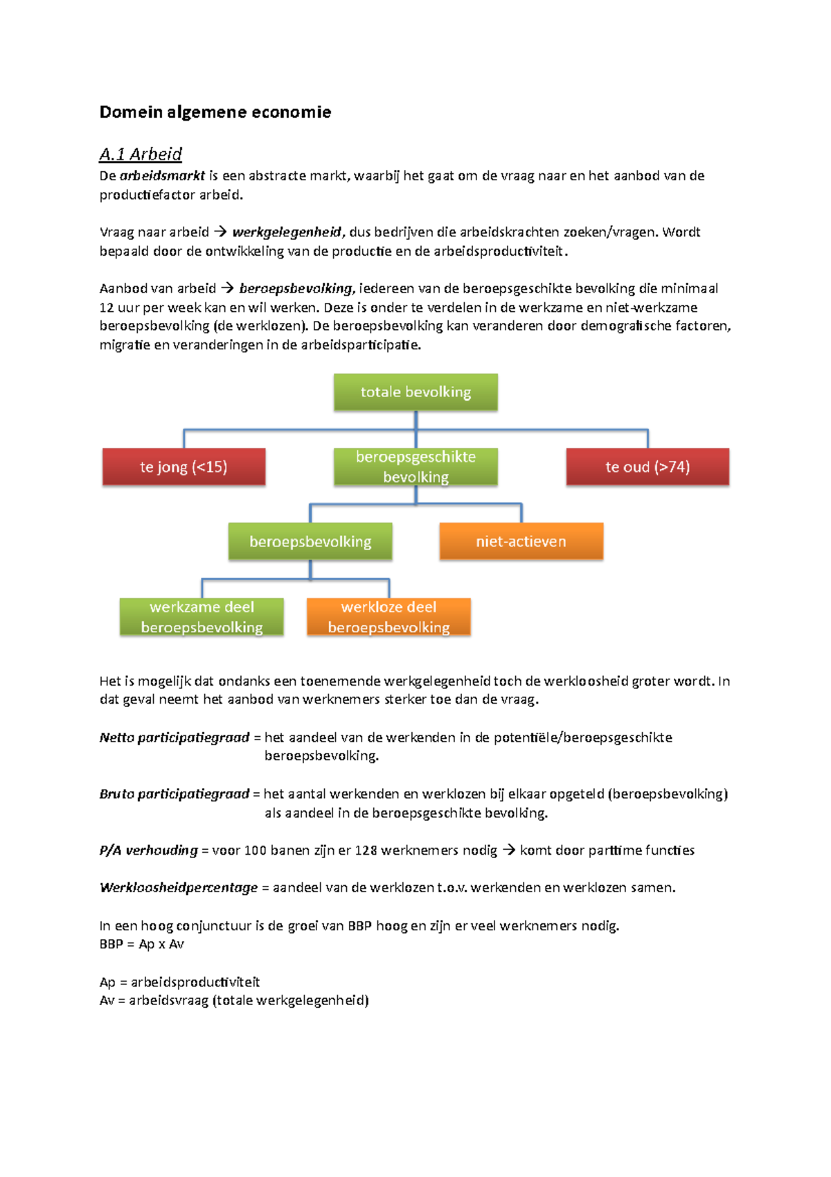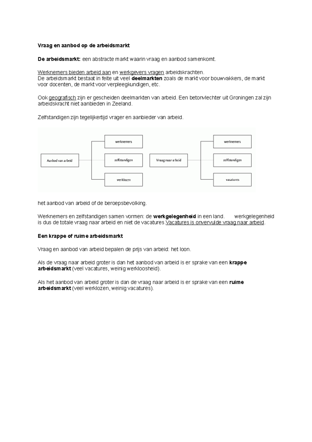 Samenvatting LKT Domein algemene economie A Arbeid De arbeidsmarkt is een abstracte markt